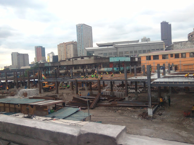 It was last year of July 27, when demolition works started after sealing a private joint venture between the Manila local government and Market Life Leasing Corp to construct a new two-storey (with rooftop parking) Quinta market worth 90 million pesos. One of Mayor Erap's programs to "Revive" Manila is to privatize the public markets for better quality and maintenance and to ignite a commercial hub, bringing life to the surrounding area.Of course this stirred anger towards the vendors of said market, claiming that the privatization would mean higher rent fees not affordable to most, hurting their business and livelihood. The Mayor promised that true renters of the old market will stay and the fees will remain the same. More than 200 vendors were relocated to orange tents while the construction is ongoing. Scuffles were reported but the demolition pushed through.
